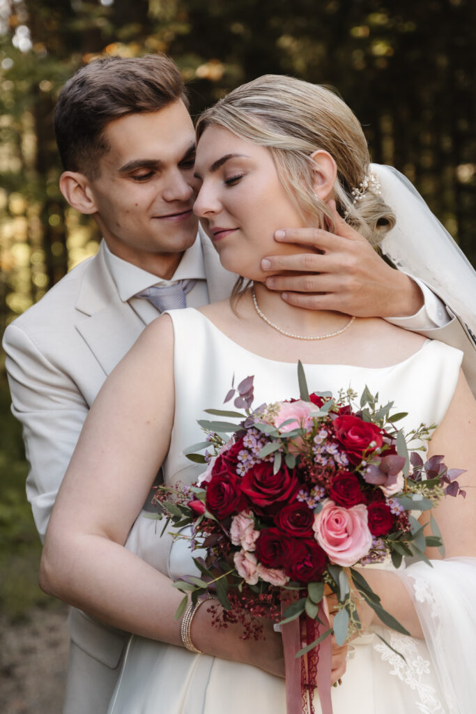 Hochzeitspaar in inniger Haltung in der Natur